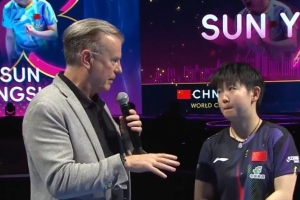 体育资讯4月5日讯 乒乓球世界杯女单决赛,孙颖莎4-1王曼昱,实现三连冠。赛后,孙颖莎接受现场记者采访。