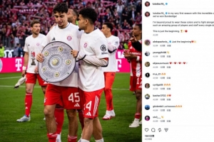 迪亚斯社媒:在我与拜仁共度的首个赛季,我们赢得了德甲冠军
